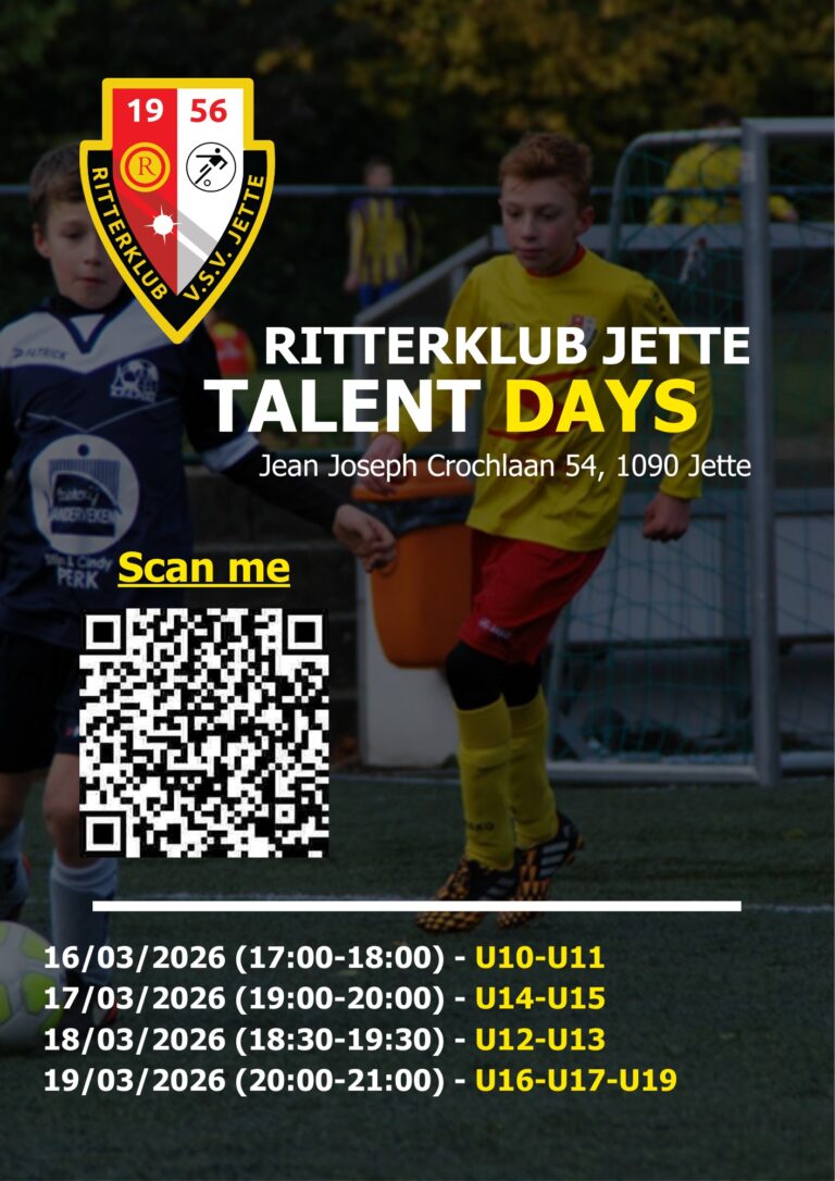 Op 16,17,18,19 maart 2026, organiseren de RitterklubJette talentdays. Je wil graag met voetbal beginnen of je speelt al en je