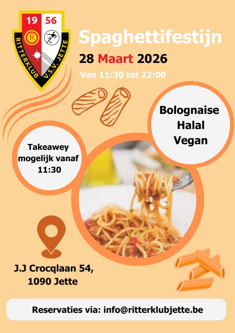 Op 28 maart 2026, organiseert de RitterklubJette zijn spagetthifestijn. Iedereen is welkom tussen 11:30 – 22:00 ! Om alles goed